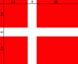 The proportions of the rectangular flag (stutflag) are 24 : 8 : 36 horizontally and 24 : 8 : 24 vertically.