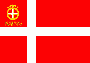 The annulet is surmounted by a stylised golden crown. Under the annulet is a golden inscription "SØNDERBORG" (1st line) and "LOTTEKREDS" (2nd line).