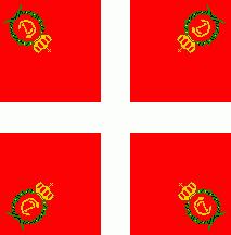 The king´s colour was a square version of the Danish national flag or Dannebrog, i.e. red parted by a centred white cross.