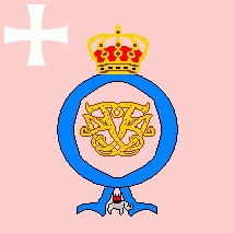 The cloth was quartered of white and green. In canton was the Danebrog, a red square parted by a white cross patty.