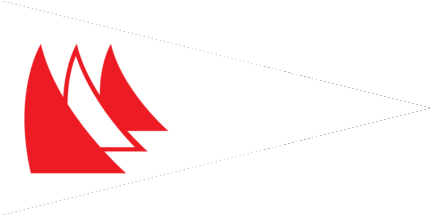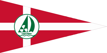 The pennant, maybe the new one is red and parted by an off-centred white cross, you can say a pennant version of the Dannebrog, on the point of intersection of the cross bars is the logo, a white disc, charged with a green sailing boat over green waves, the bigger sale charged with a white water propeller,