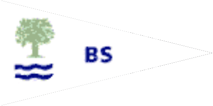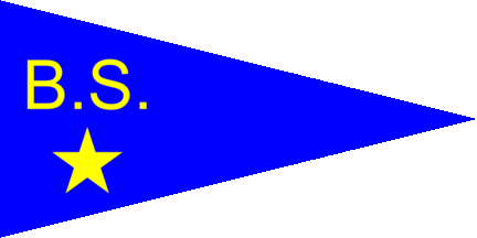 The pennant is white with a centred blue inscription "BS". Shifted to hoist are two blue waves under a green eradicated tree. Bogø is a small island in the Storstrømmen between Zealand and Falster.