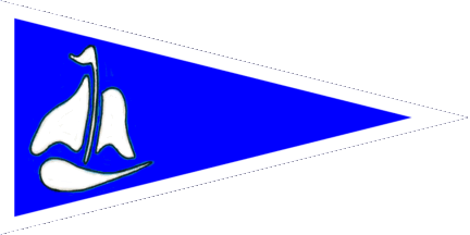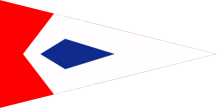The pennant is parted per chevron pointing to hoist of blue and red. On the blue part at hoist are two white sails.