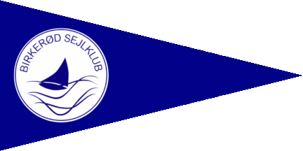 The pennant is either blue (see left image above) or white (see right image above) with logo shifted to hoist. The logo is a white disc cotised blue-white with a blue sailing boat on waves of the same. At the upperhalf is an embowed blue inscription "BIRKERØD SEJLKLUB". Birkerød is one of North Zealand´s "villages in wood" located some 10 km north of København.