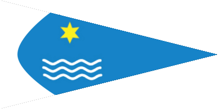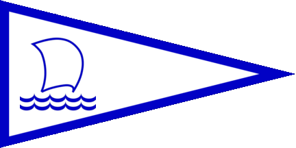 The 1st pennant (see left image above) is white cotised blue-white with the name of the club alongside the hoist and shifted to hoist a bluesailing boat with white sail sailing to fly.
