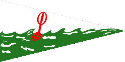 The pennant is parted abased by a wavy line of white over green. Issuant from the line of partition is a red buoy in bend sinister.