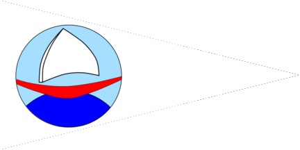 The pennant is white. Shifted to hoist is a celestial blue disc charged with a sailing boat with red hulk and white sail on a dark blue segment of a circle.
