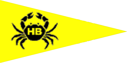 he pennant is yellow. Shifted to hoist is a black crab with yellow letters "HB" on its carapace. Hardeshøj is located on the north of Als Island near Ballebro.