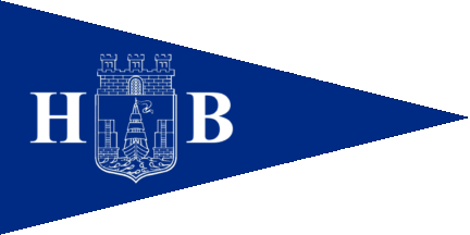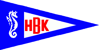 It is a blue pennant with a sinister facing white seahorse at hoist and a white triangle in fly with red inscription "HBK" with a bigger "B".