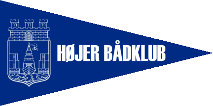 The 2nd pennant (see right image above) is blue with a simplified coat of arms of Højer outlined white at hoist and a white inscription "HØJER BÅDEKLUB" at fly.