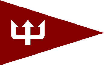The pennant is red. At hoist is a blue sail superimposing a bigger white sail. In centre is a white inscription "S.H.S.".