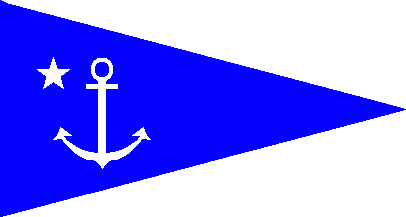 The pennant is blue. Shifted to hoist is a white anchor. In canton is a white 5-point star.