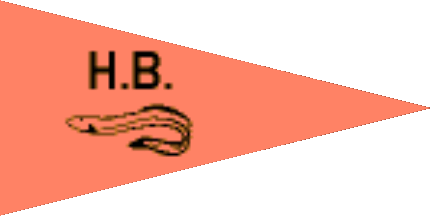 The pennant is orange with a black inscription "H.B." over a black eel. Haverslev is located on the bank of the namesake sound in North Jutland.