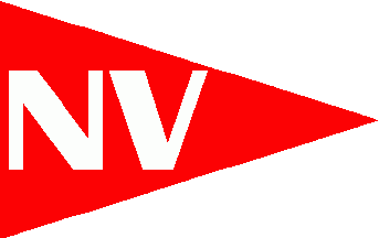 The pennant is red. Shifted to hoist is a white inscription "NV".