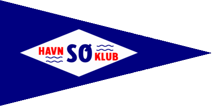 The pennant is dark blue with a white lozenge containing an inscription as follows "HAVN"(red) "SØ" (blue, bigger) "KLUB" (red). Havnsø is located near Kalundborg in Northwest Zealand.