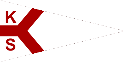 The pennant is white cotised red-white, shifted to hoist is a red trident flanked by red letters "K" (hoist), "v" (bottom) and "S" (fly). The name of the club is literally "female sailing club".