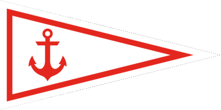 The pennant is white cotized red-white. Shifted to hoist is a red anchor in pale.