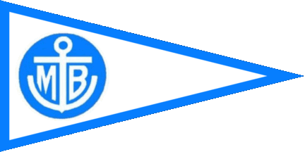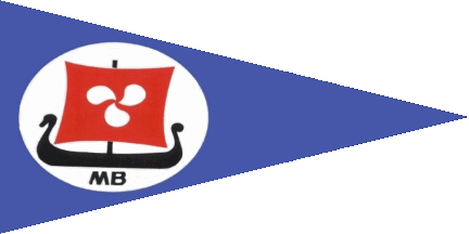 The pennant is blue. Shifted to hoist in a white disc is a black viking ship with red sail, charged with a white ship propeller. Under the ship are black initials "MB".