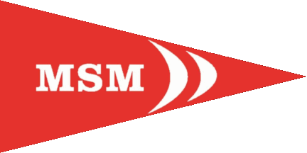 The pennant ist red with white inscription "MSM" shifted to hoist and parted by two rounded white chevrons pointing to fly.