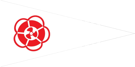 The pennant is red, charged with a white flying seagull and white initial "R" (upper hoist) and "J (lower hoist).