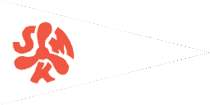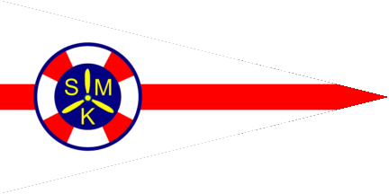 The pennant is white. At hoist is a red ship propeller flanked by red letters "SMK".