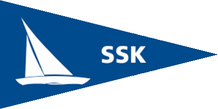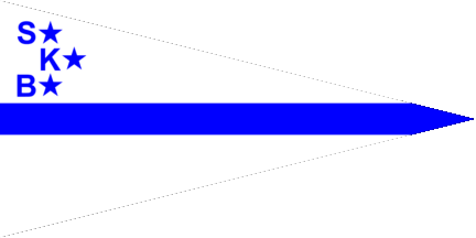 The pennant is blue. At hoist is a white sailing boat, on fly a white inscription „SSK“.