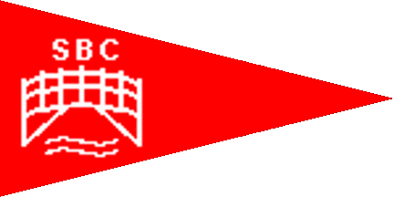 The pennant is red. At hoist is a white bridge flanked by white waves below and white inscription "SBC" above.