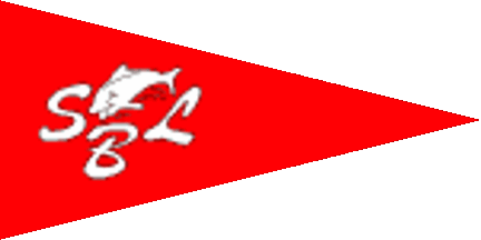 The pennant is red. Shifted to hoist is a white fish flanked by stylised white letters "SBL".