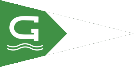 The pennant is parted per chevron pointing to fly of green, cahrged with a white "G" over two white wavy lines (hoist) and white (fly). Stubbekøbing is located on the northern shore of Falster Island, precisely at the name giving Grønsund.