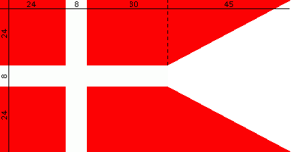 The proportions of the flag with a swallow-tail are 24 : 8 : 30 : 45 horizontally and 24 : 8 : 24 vertically.