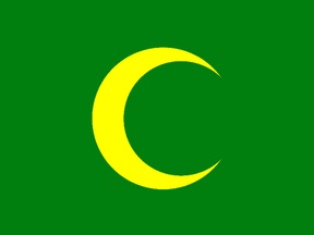 The emblem of the Junta Central de Fiestas (souce: Cadenaser.com) : has two flags, symbolizing Moors (gold crescent on green field) and Christians (red cross on white field).