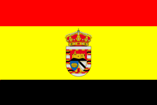 Coat of arms: Per fess, 1. Gules the castle of Puebla de Alcocer or on a base sable, 2a. Azure an Imperial crown or, 2b. Argent a bend sable orled by a chain or with eight links. Grafted in base, Or a Mudéjar window gules masoned sable. A bordure argent three fesses checky gules and or charged with a belt sable. The shield surmounted by a Royal crown closed.