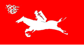 No. 4: Horizontally divided (4:1), the upper part, red with the riding knight from the coat of arms and the municipal emblem in canton, the lower part, white.