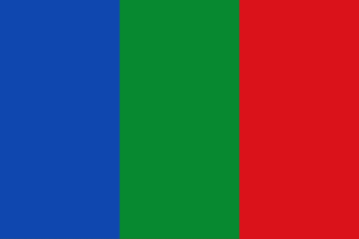 Description: Divided vertically into three stripes of equal width: blue at the hoist, green in the center and red in fly.