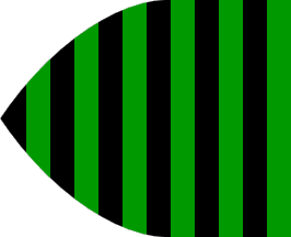 The 2005 Spanish illustrated transcription of the "Book" [f0f05] shows a vertically striped flag in the ogival default shape of this source, with six green stripes alternating with six black ones (green at the hoist).