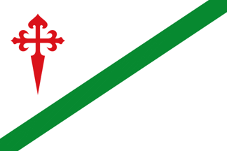 Description: White, with a diagonal green stripe running from the bottom corner of the staff to the top of the fly. Ared Cross of Santiago is located in the top corner of the staff.