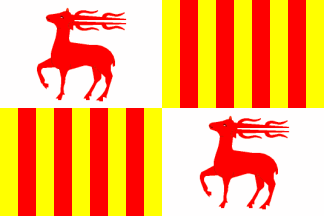 Keywords: cervera | stags: 2 (red) | stripes: vertical (yellow-red) | quatre barres |