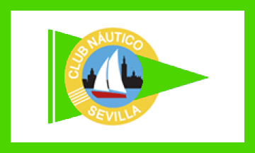The flag of the swimming section of CNS (photo, photo) is divided green-white from lower hoist to upper fly, charged in the center with the club's burgee and inscribed with "CLUB NAUTICO / SEVILLA" in upper hoist and "NATACION" in lower fly, countercolored.