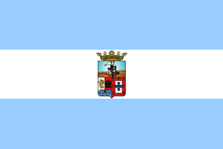 The flag of Villanueva del Ariscal (photo, photo) is horizontally divided celestial blue-white-celestial blue with the municipal coat of arms in the middle.