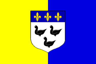 Pascal Vagnat and Arnaud Leroy reported in 2010 a bicolore flag consisting of two vertical stripes, yellow and blue, with the town's coat of arms in the center. The colors are believed to have originated