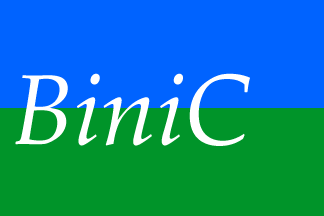 The flag of Binic was a banner of the municipal arms, "Azure two fish fesswise in pale argent a chief ermine" (photo, photo). The municipality also used a flag horizontally divided blue-green, modeled on the department flag, with "BiniC" written in white letters.