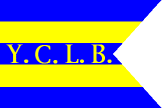 The flag of the YCLB (website) is made of five horizontal alternating blue and yellow stripes with the yellow letters "Y.C.L.B". in the median blue stripe. The burgee is triangular, in proportions 1:2. The members of the board of the club (President, Vice President, Secretary, Treasurer) can use a swallow-tailed burgee. The rectangular flag of the club can be hoisted on board during a yachting event.