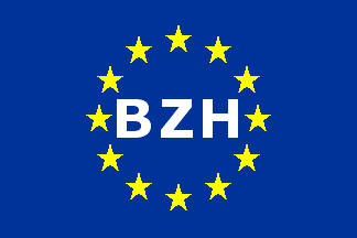 The EuroBreton flag is the European Union flag with the white letters "BZH" inside the ring of stars. The >EuroBretonflag was presented by Mikael Bodlore-Penlaez, who is, however, not the designer of the flag, in Ar Banniel [arb], #12 (Summer 2000).