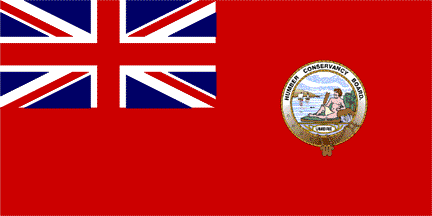 Warrant. Salvage vessel belonging to Humber Conservancy Commissioners shall be permitted to wear Red Ensign of Her Majesty's Fleet with badge of the Commissioners on the fly thereof, viz, The figure of Humber, a river god with an oar in his right hand, and leaning on two pots from which issue streams typical of the rivers Trent and Ouse, uniting in the background to form the Humber, the word VMBRE below the figure and legend Humber Conservancy Commissioners with date 1852 upon a girdle encircling the design. 30 Jan 1888.