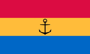 On 16 July 1989 the village held the Embo Olympics, inviting countries whose flags use the same colours. The new Embo flag uses the same tricolour and adds a central image of a black anchor. This references a local landmark, originally washed up from a Prussian wreck in the 1870s. The full list of Pantone® colours is: Red 186, Gold 1235, Blue 300, Black.