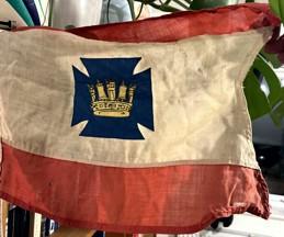 shows the burgee vertical white and red. In the centre of the white half is a
