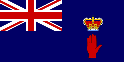shows the burgee blue with a white shield containing the red hand of Ulster,