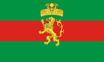 Olivier Touzeau, 6 November 2025A green-red-green horizontal triband with in the center a golden lion under a golden crown. This flag is seen at https://www.facebook.com/groups/flagsoftheworld where the chieftain is seen at an event in Spain. Francisco Manuel García sent a good image of the emblem, which I used to make the image above.