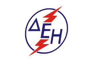 The flag of DEI, Public Power Corporation, with the logo that was in use between