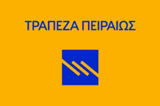 The flag of Piraeus Bank is deep yellow with the corporate logo